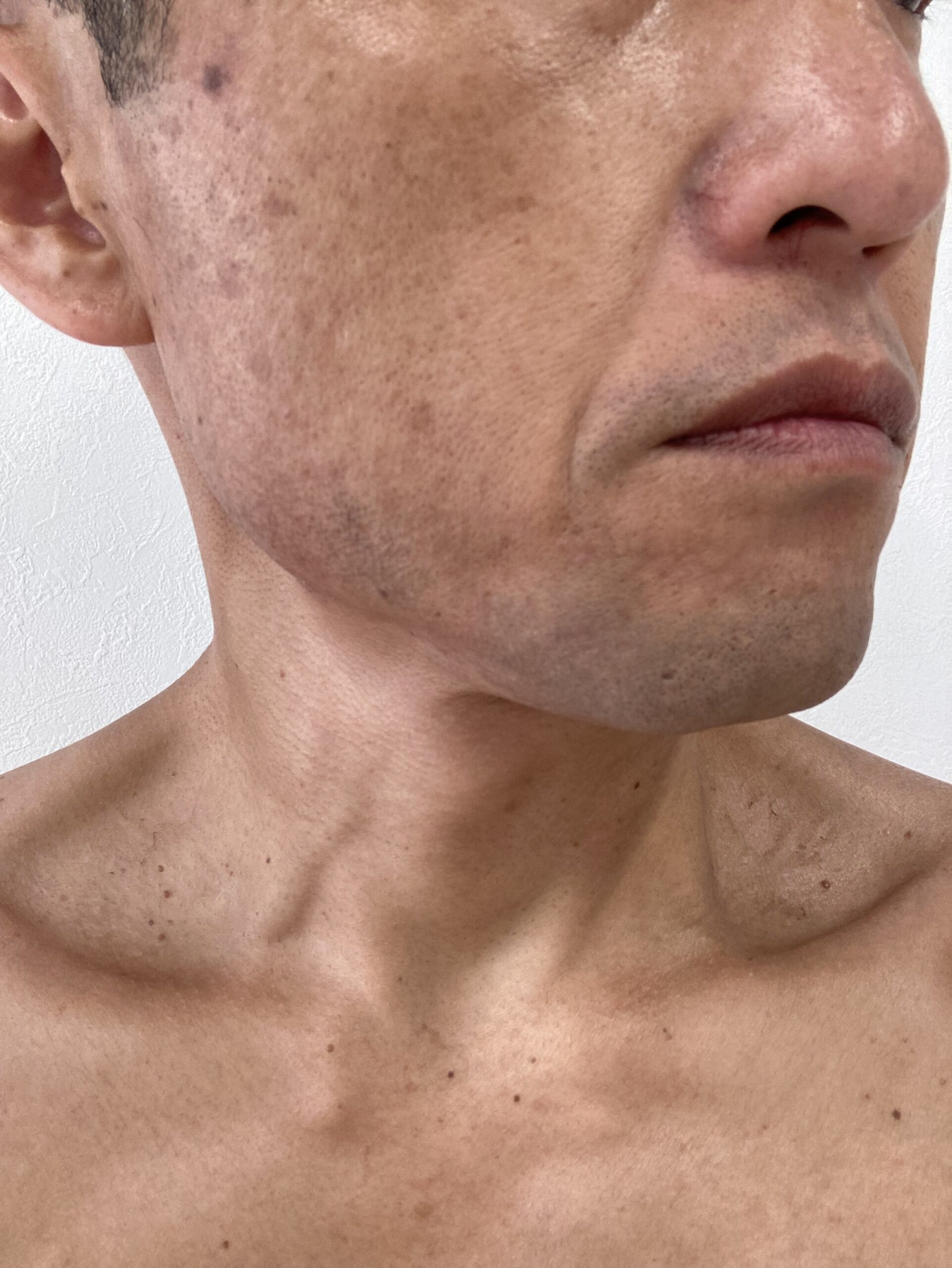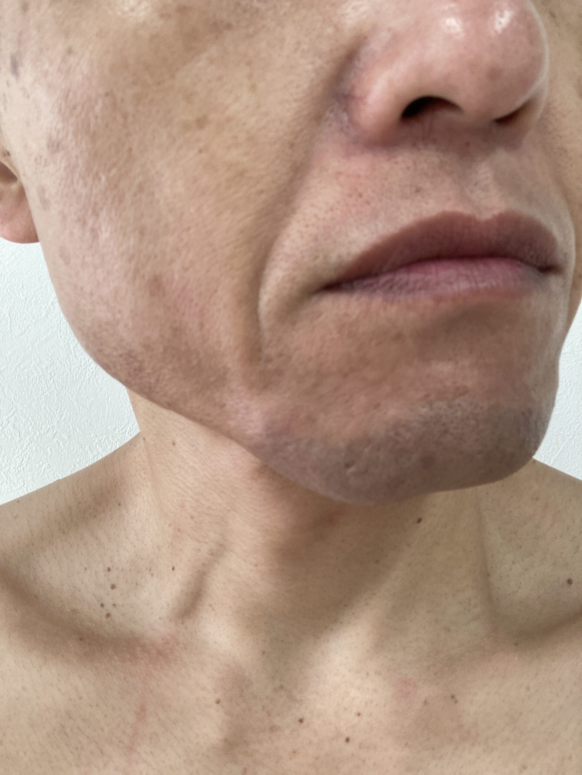 画像ではわかりにくいですが顎先薄くなっております他は毛穴消失。肌がきれいになってきてます、一緒に生活している家族にもいわれるようになってきました。