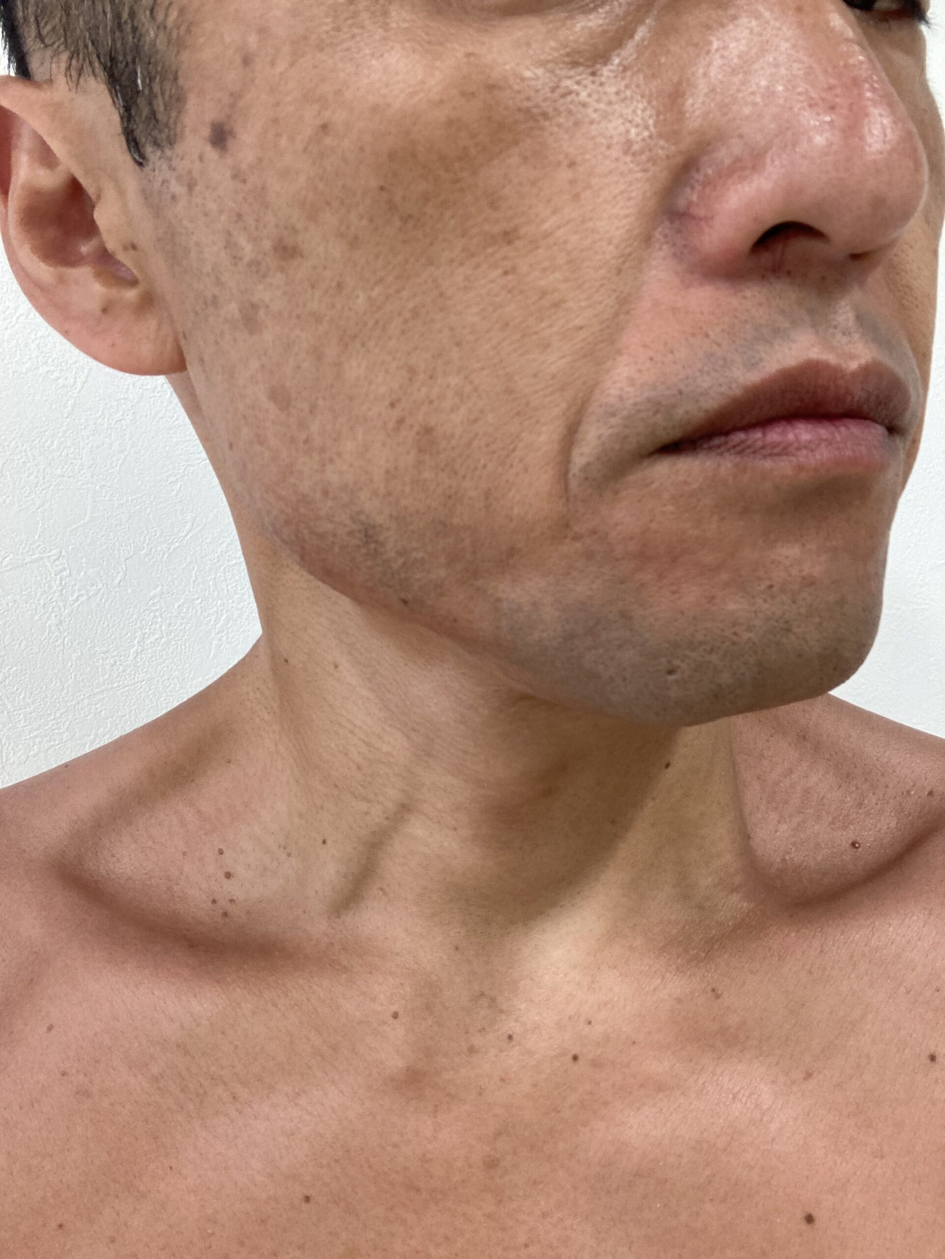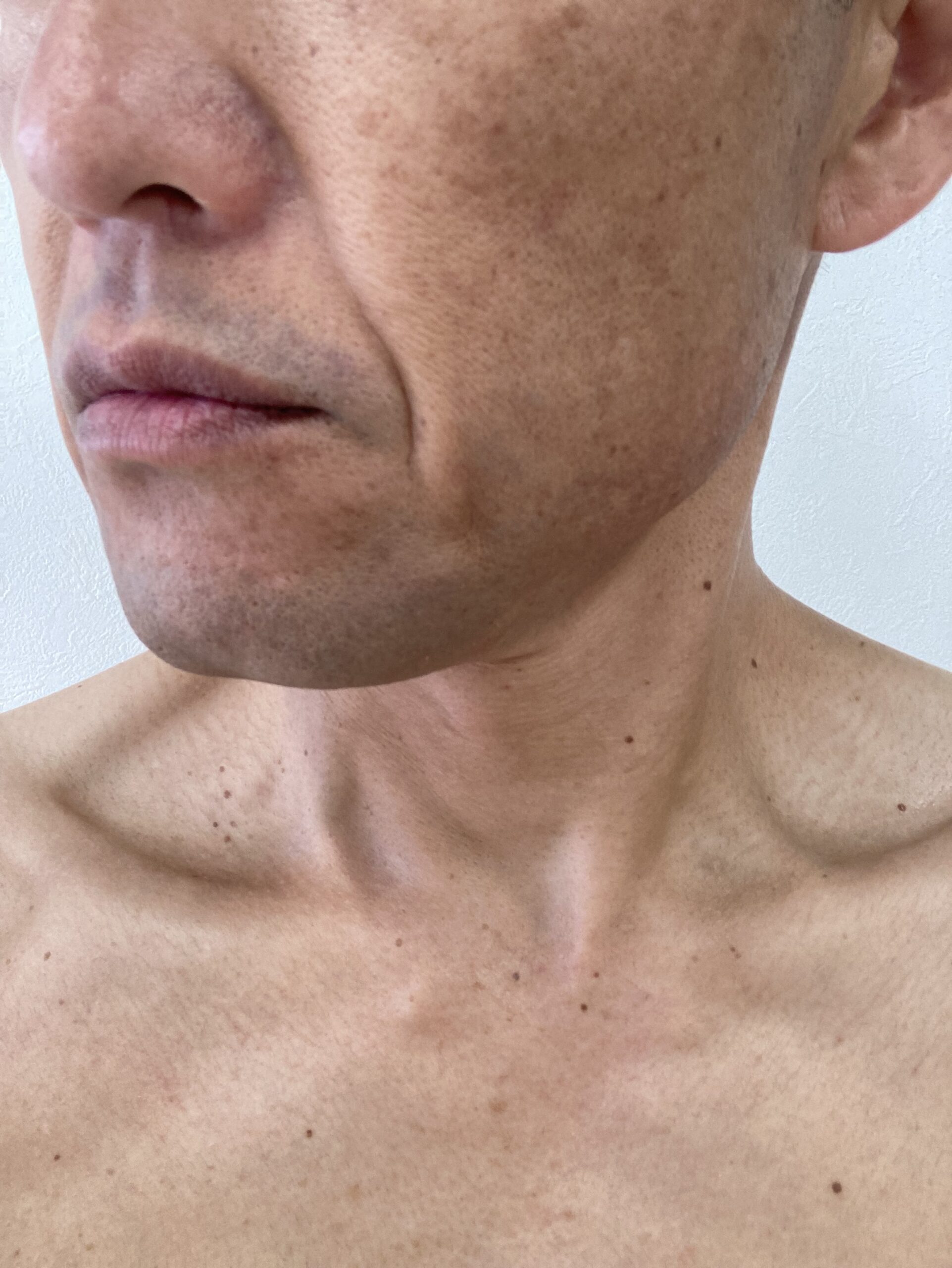 写真ではわかりにくいですが、顎下明らかに髭密度減少しております。肌もきれいになり小じわが消えきめが細かくなってきました。
